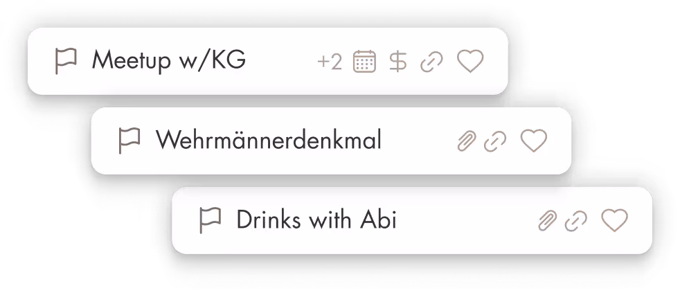 Without hidden fees or pressure to book. Like Notion for travel. Start a trip plan in just 5 minutes.